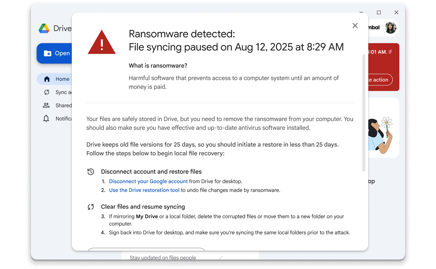 Google positioniert den neuen Schutz als zusätzliche Sicherheitsschicht neben klassischen Antivirenprogrammen, die Angriffe häufig nicht vollständig verhindern können, wie es seitens des Anbieters heisst. Während diese versuchen, Schadcode frühzeitig zu blockieren, soll Drive auch dann noch eingreifen, wenn Ransomware bereits aktiv ist.