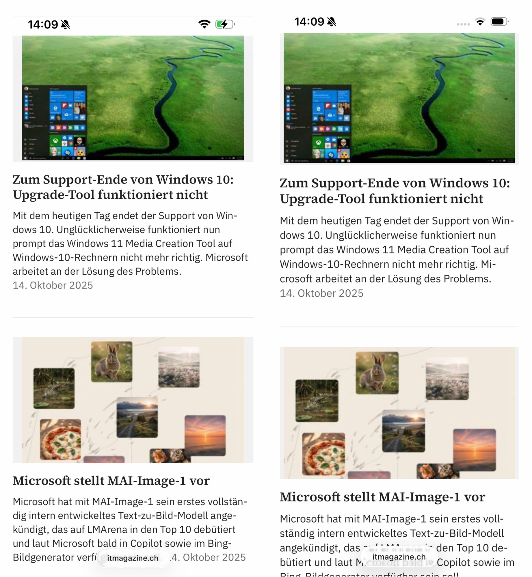 Das Display des iPhone Air (links) wirkt deutlich grösser als dasjenige des iPhone 17 Pro (rechts). Viel mehr Platz bietet es aber beispielsweise bei einer Website nicht. (Quelle: SITM)