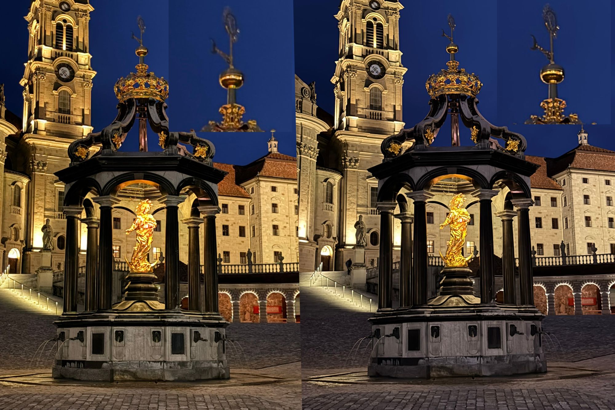 Auf dieser Abendaufnahme mit künstlicher Beleuchtung finden wir kaum Qualitätsunterschiede zwischen dem Foto des iPhone Air (links) und dem des iPhone 17 Pro (rechts). (Quelle: SITM)
