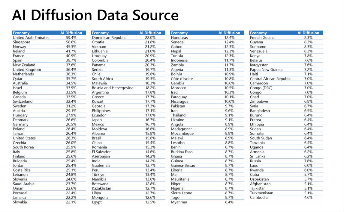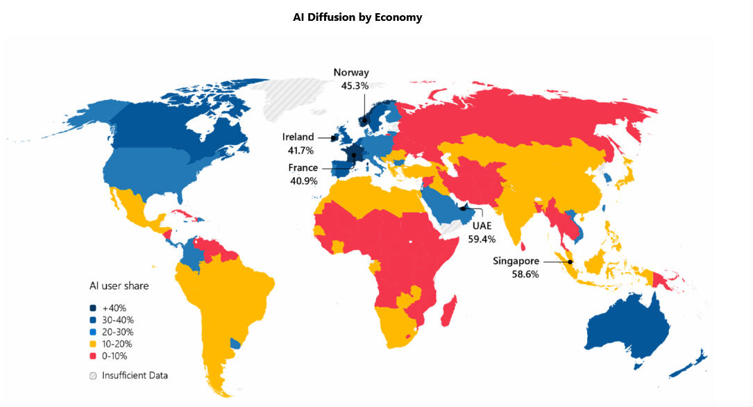 Microsoft hat im Rahmen einer Studie die weltweite KI-Nutzung unter die Lupe genommen und die Ergebnisse im