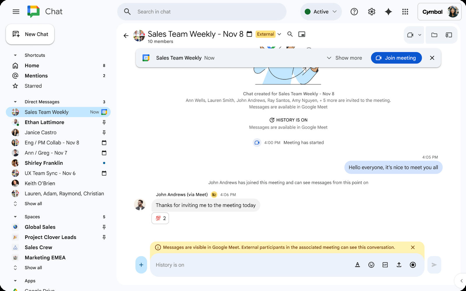 Google Chat bereitgestellt und bleiben dort nach dem Termin verfügbar. Nach