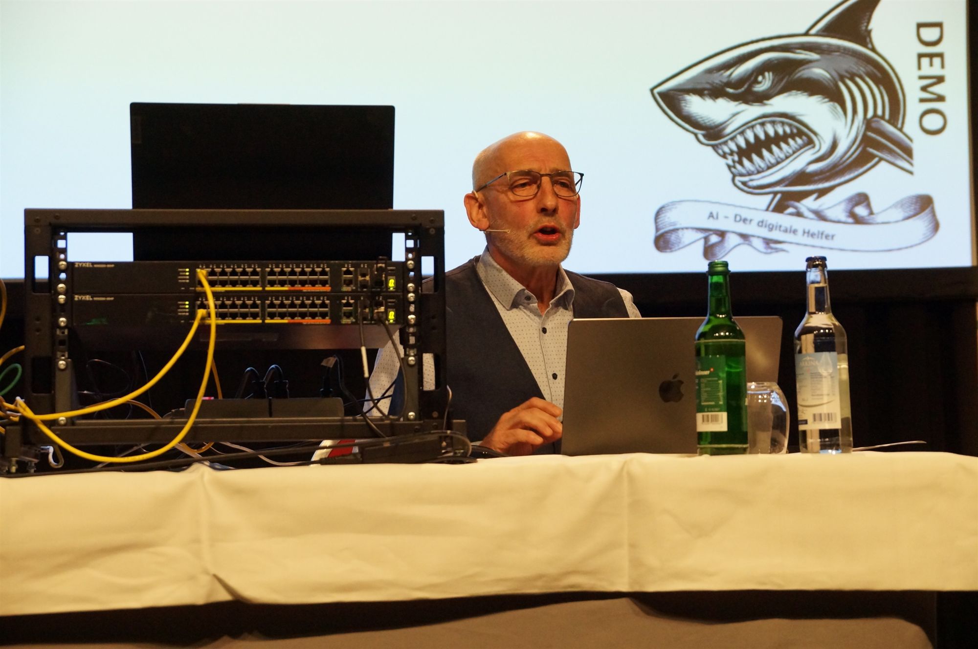 Im Anschluss folgte die gleichwohl spannende wie unterhaltsame Keynote von Prof. Dr. Marc Pouly, Professor für Informatik an der Hochschule Luzern. Er beleuchtete den Einfluss Künstlicher Intelligenz auf IT und KMU und zeigte dabei unter anderem auf, wie sich KI datenschutzkonform nutzen lässt, welche Ressourcen die Technologie benötigt ("Wir haben Energie auch schon weniger sinnvoll genutzt"), wo die Grenzen aktueller Sprachmodelle liegen ("KI hat kein Wahrheitsbewusstsein") und wohin die Entwicklung noch führen könnte. Auf die einzige Publikumsfrage – ob man Halluzinationen in den Griff bekommen werde – antwortete er zum Abschluss mit: "Nein, mit der heutigen Technologie nicht."