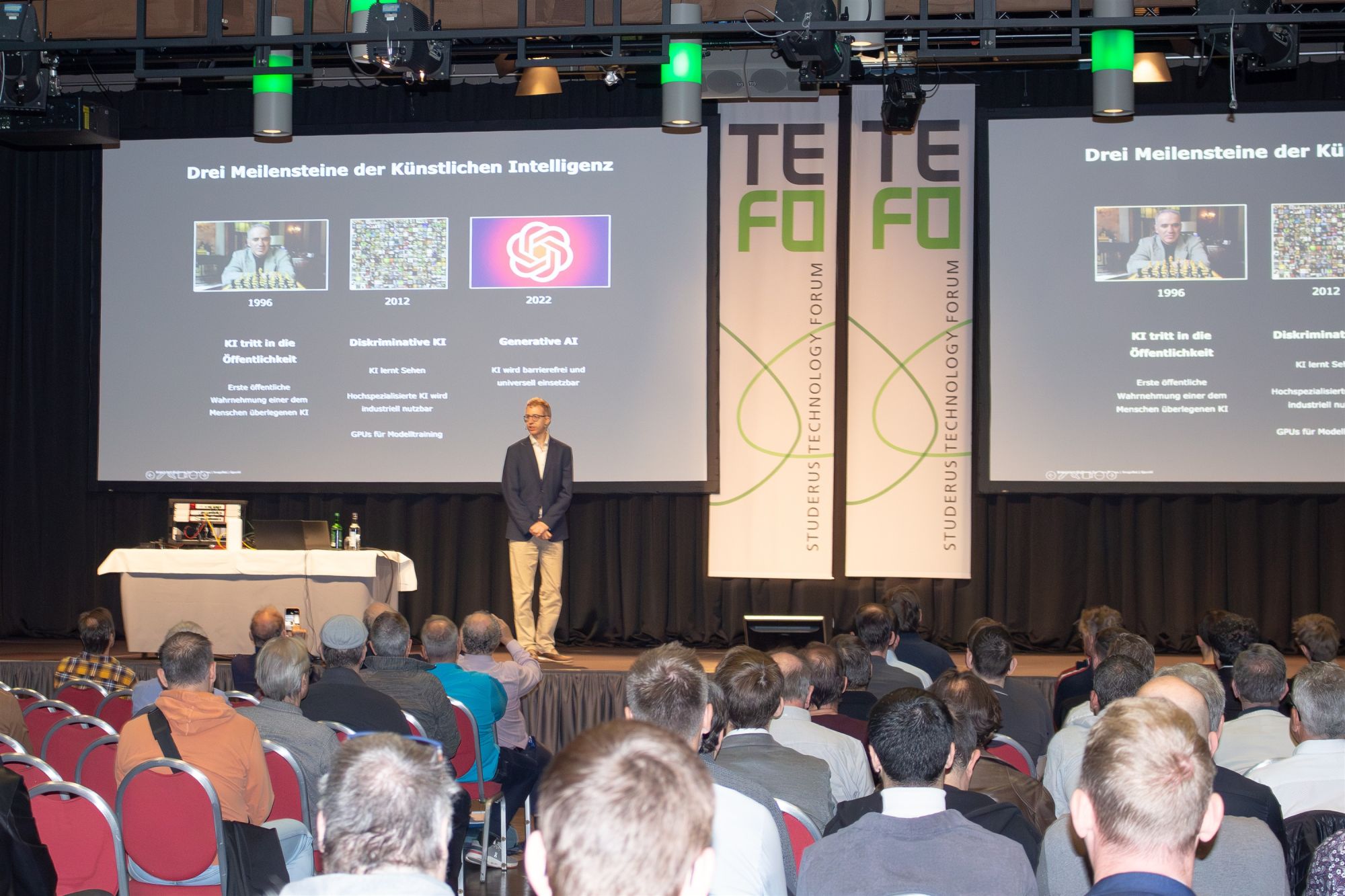 "Am TEFO wirst du schlauer!" – so lautete das augenzwinkernde Versprechen des diesjährigen Studerus Technology Forum (TEFO), das einmal mehr in Zürich-Regensdorf über die Bühne ging. Gelegenheit, sich neues Wissen anzueignen, bot der 15. Anlass des Forums reichlich. Über ein Dutzend Referate in drei parallelen Tracks zu einer Vielzahl an Themen – von Künstlicher Intelligenz über moderne Telefonielösungen, Security und Netzwerktechnologien bis hin zu TV im Hospitality-Umfeld – erwarteten die rund 350 Gäste, die Studerus einmal mehr begrüssen durfte.