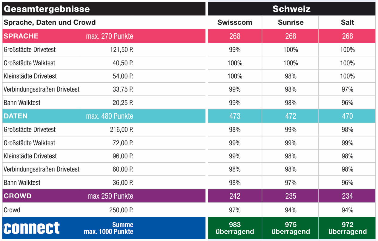 Connect-Netztest: Salt und Sunrise überragend; Swisscom am überragendsten