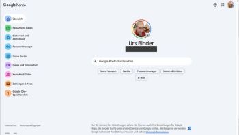 Google teils angepasst. In der englischen Version heisst es zum Beispiel neu "Security & sign-in" statt "Data & Privacy", während der Punkt "Security" zum "Password Manager" wurde. Statt "People & Sharing" erscheint neu der Punkt "Your Devices", und "Payments & Subscriptions" wird ersetzt durch "Data & Privacy". Ausserdem erscheint nun unter dem Profilbild deutlich die E-Mail-Adresse des Kontos (im Bild geschwärzt).