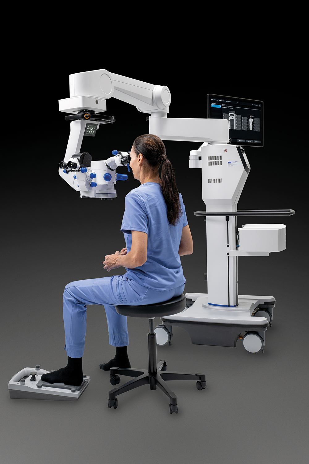 Operationsmikroskope, die besonders in der minimalinvasiven Chirurgie zum Einsatz kommen, gehören ebenfalls zum Portfolio von Haag-Streit. Spannendes Detail: Das abgebildete Modell Metis zeigt das Bild des Mikroskops auf einem zusätzlichen hochauflösenden Bildschirm. (Quelle: Haag-Streit)