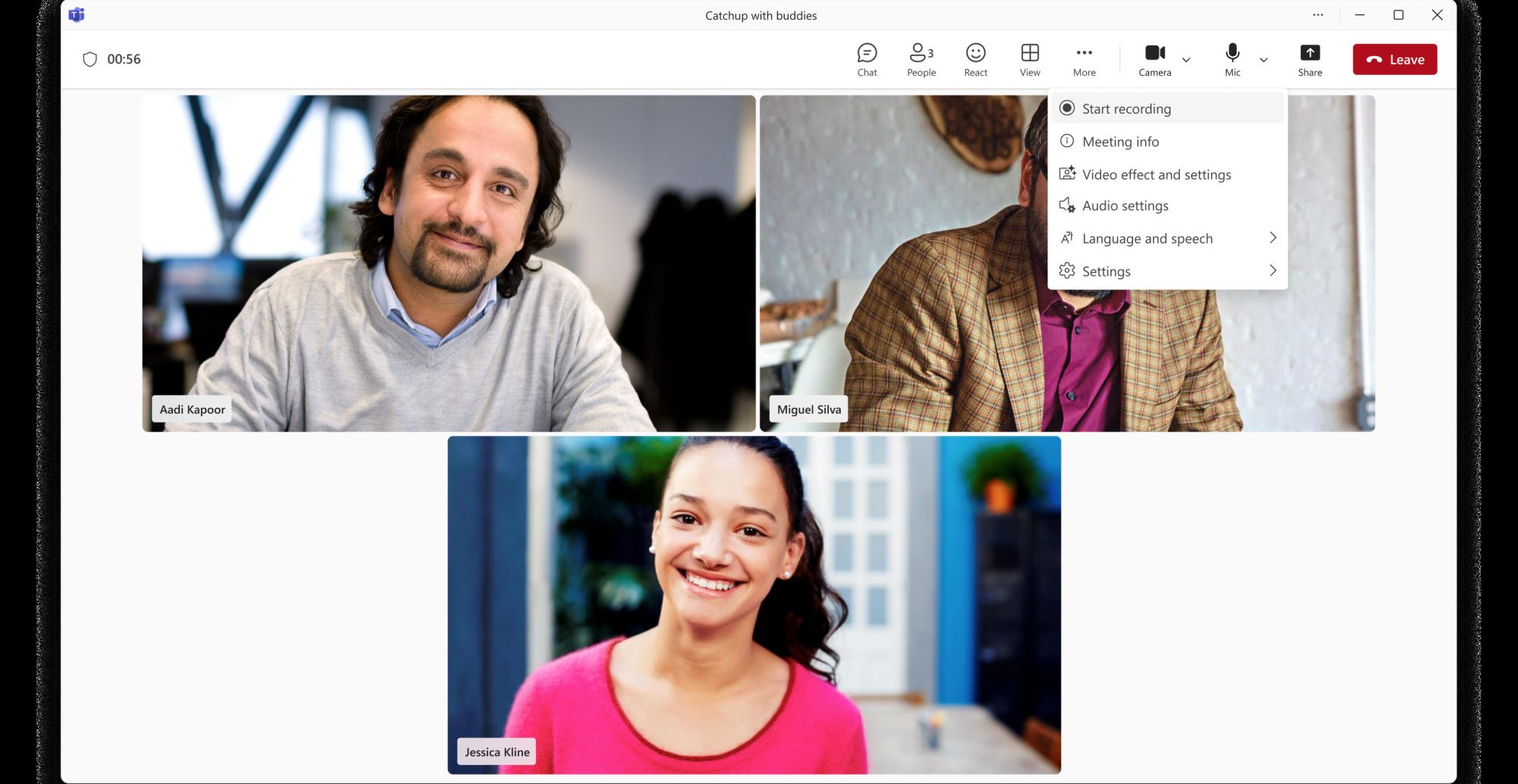 Wie von den Business-Abos von M365 bekannt, sehen alle Meeting-Teilnehmerinnen und -Teilnehmer, wenn ein Gespräch aufgezeichnet wird. Die Aufnahmen sind im Anschluss für alle, die am Call teilgenommen haben, verfügbar und können auch innerhalb von Teams nochmal abgespielt werden.