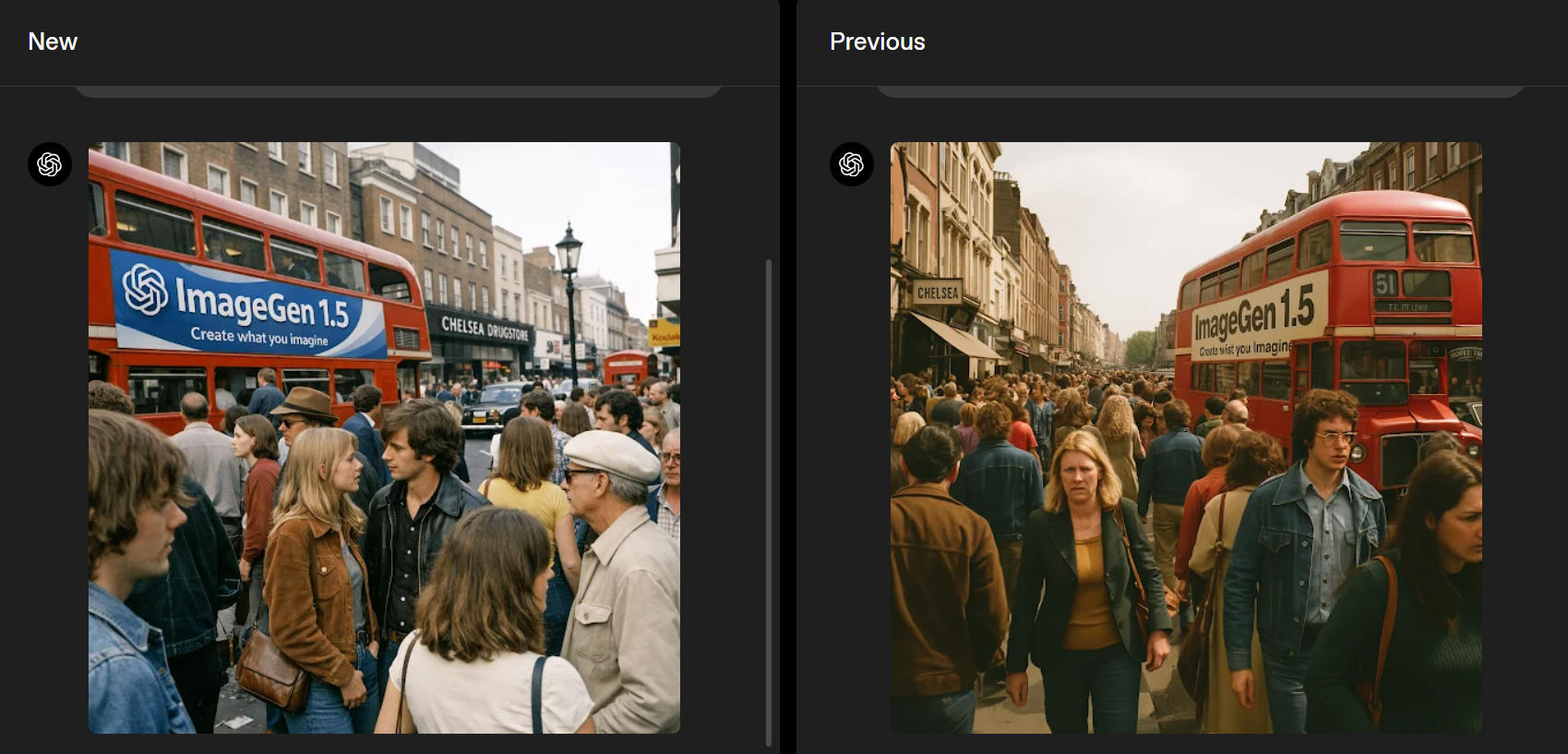 Parallel führt OpenAI einen eigenen Bilderbereich in ChatGPT ein, der in der Seitenleiste der mobilen App und auf chatgpt.com verfügbar sein soll und voreingestellte Filter und Anregungen bietet. Für die API-Version nennt OpenAI zudem eine um 20 Prozent reduzierte Kosten für Bild-Ein- und -Ausgabe im Vergleich zu GPT Image 1.