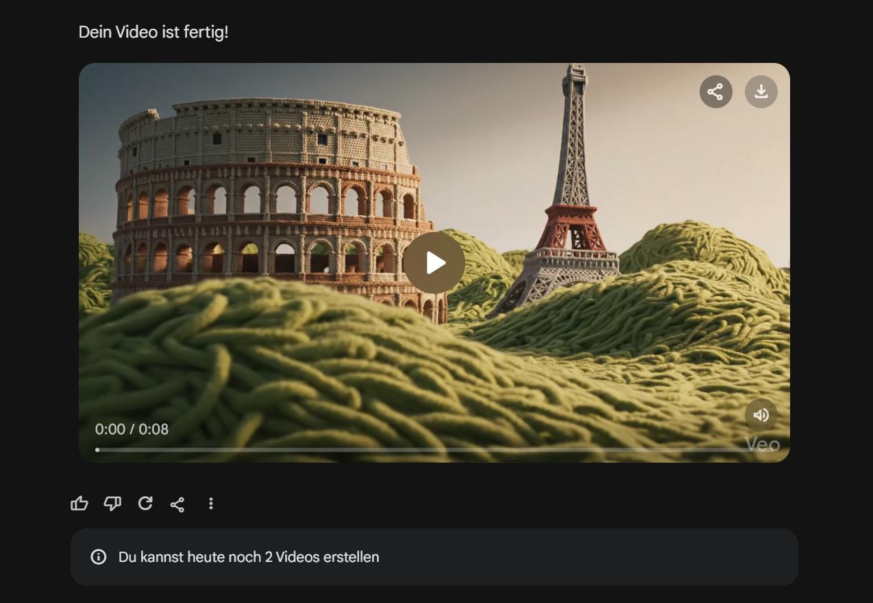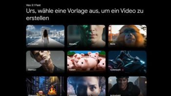 Die aktuell 15 Videovorlagen erscheinen zunächst in der Webversion von Gemini (gemini.google.com) und in den Apps für Mobilgeräte. Die Videoerstellung basiert auf Veo 3.1 und lässt sich mit den Abos Google AI plus (2 Videos pro Tag), Google AI Pro (3) und Google AI Ultra (5) nutzen. Unterstützt wird neben dem üblichen Breitbildformat auf Wunsch auch die Generierung von vertikalen Videos im Format 9:16, was im prompt angegeben werden kann.