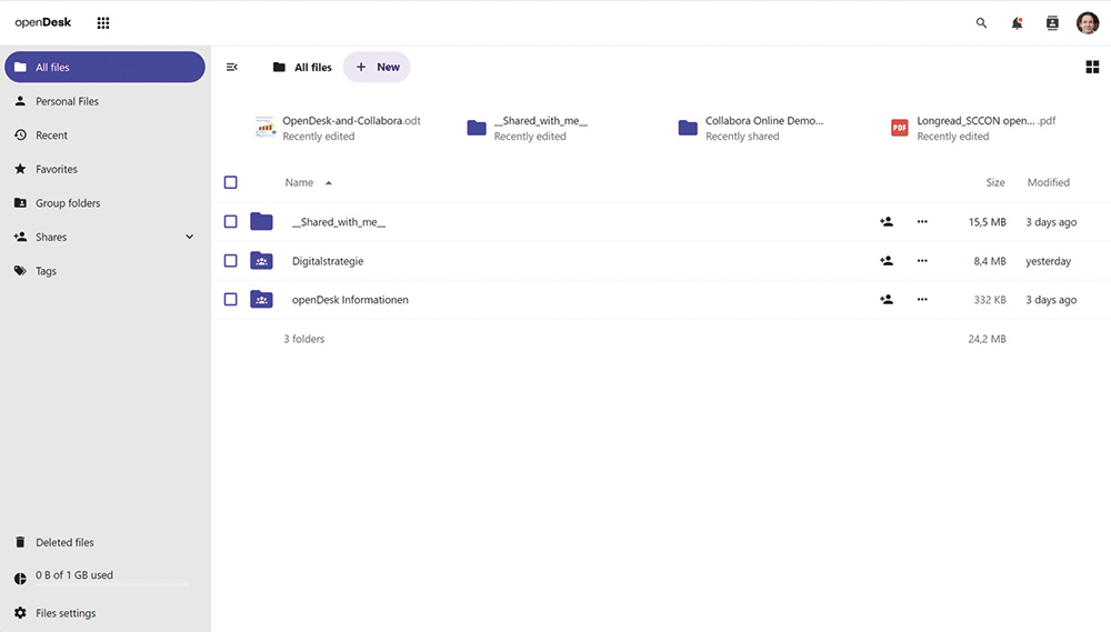 Als Plattform für das DSGVO-konforme Dokumentmanagement kommt in der OpenDesk-Suite Nextcloud zum Einsatz. Unterstützt werden alle gängigen Formate für Text, Tabellen und Präsentationen. (Quelle: openprojectorg)