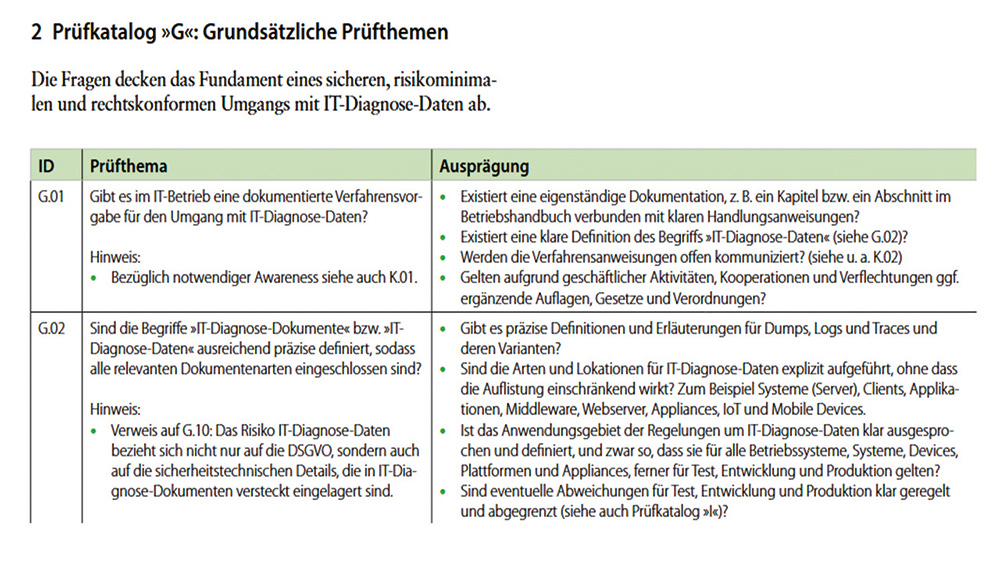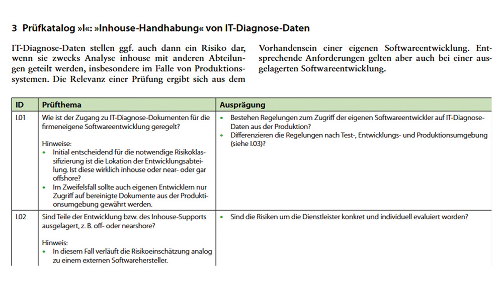 Entsprechend hat sich ein neues Prüffeld für IT-Audit und IT-Revision entwickelt. Es lässt sich am besten mittels des Prüfkatalogs «IT- Diagnose-Daten» monitoren. Er umfasst rund 45 Prüfthemen, aufgeteilt nach «Grundsätzlichen Prüfthemen», «Inhouse IT-Diagnose-Daten», «IT-Diagnose-Daten bei Cloud & Co.» und «Stichprobenprüfung IT-Diagnose-Daten». Seine Veröffentlichung durch das ISACA Germany Chapter in der Zeitschrift IT-Governance Heft 40 Dezember 2024 fand sehr grosses Interesse, und er wird von Revisoren bereits für gezielte Prüfungen praktisch angewandt.