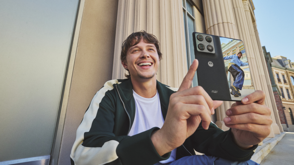 Motorola Razr Fold, soeben im Rahmen des MWC in Barcelona angekündigt, sei das erste faltbare Smartphone der Marke im Buchformat, hält der Hersteller fest. Das Gerät bietet ein 6,6 Zoll grosses Aussendisplay; aufgeklappt erscheint ein 2K-LTPO-Innendisplay mit 8,09-Zoll-Diagonale. Im geschlossenen Zustand ist das Razr Fold 9,89 mm dick, geöffnet nur 4,5 mm. Das Innendisplay sei das hellste aller auf dem Markt erhältlichen Falt-Smartphones, betont Motorola weiter. Unter dem Display ist eine innere Bildschirmplatte aus Titan verbaut. Diese verteile den Druck gleichmässig, sodass der Bildschirm nach jedem Öffnen und Schliessen in seine ursprüngliche Form zurückkehre und langfristig seine Konsistenz behalte. Ein adaptives Scharnierdesign ermöglicht mehrere Nutzungsmodi von vollständig geöffnet oder geschlossen bis zum Laptopmodus für Tippen und Multitasking und zum Zeltmodus zum Präsentieren von Inhalten.