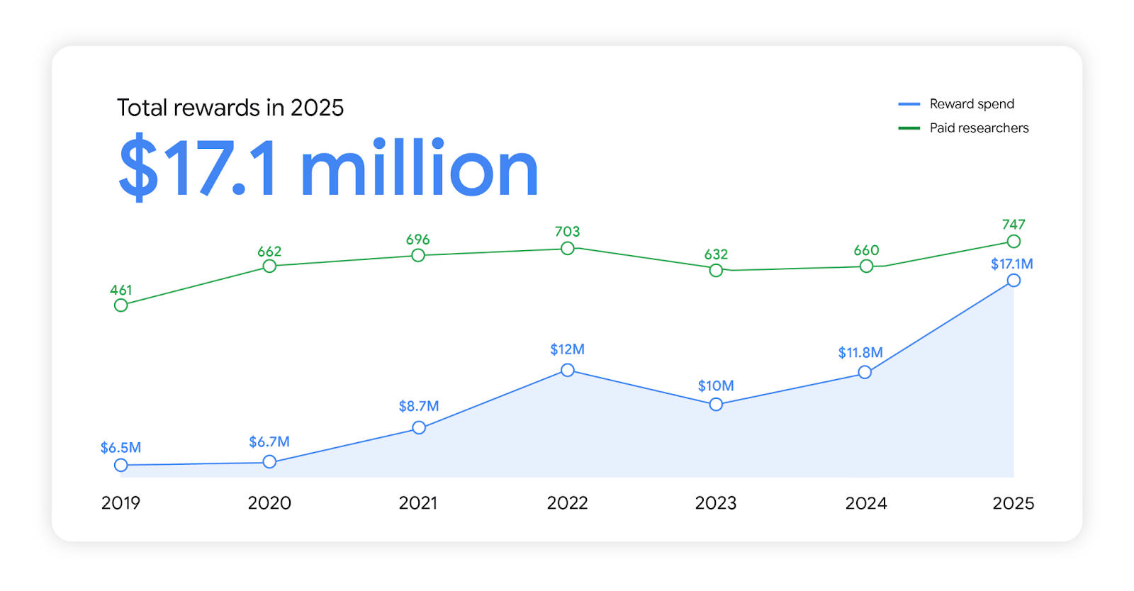 Google zahlte 2025 im Rahmen seiner Bug-Bounty-Programme mehr als 17 Millionen Dollar an über 700 Sicherheitsforschende aus, so viel wie noch nie. Das geht aus dem Rückblick "
