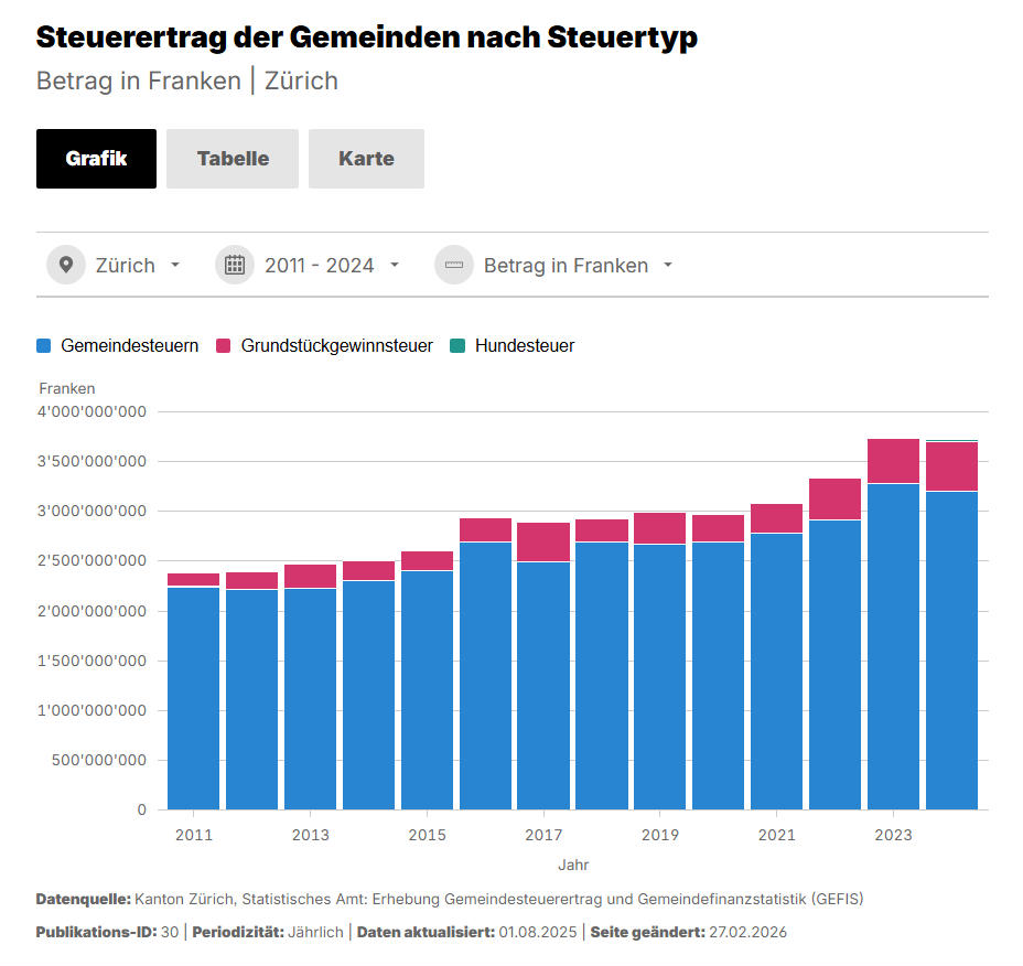 Das Statistische Amt des Kanton Zürichs hat eine neue offene Datenplattform lanciert, in der Daten aus den Zürcher Gemeinden einfach für die Bevölkerung und Wirtschaft zugänglich gemacht werden. Die Plattform heisst "Zürcher Gemeinden in Zahlen" und