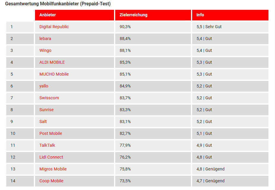 Gesamtsieger der Kategorie Prepaid ist damit Digital Republic vor Lebara,