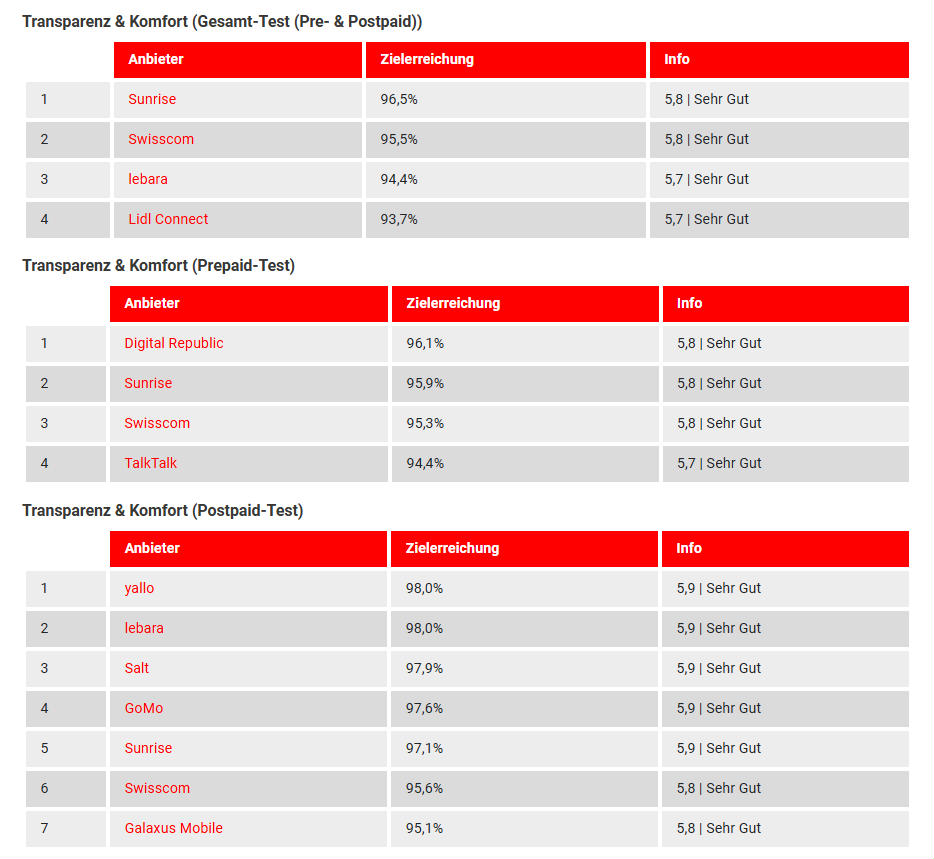 Yallo (Postpaid) am besten. Gesamtsieger ist derweil