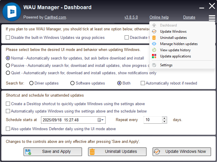 Wer sich mit Microsofts Windows-Updates-Steuerung noch nie anfreunden konnte, dem sei ein Blick auf WAU Manager empfohlen. Das Tool bietet eine filigranere Steuerung der Update-Installation, vermag den Prozess aber auch gänzlich zu deaktivieren. Darüber hinaus lassen sich Updates über einen integrierten Scheduler steuern. Ebenfalls praktisch: WAU Manager prüft bei Bedarf auch die installierten Applikationen und zeigt, für welche eine neuere Version vorliegt.