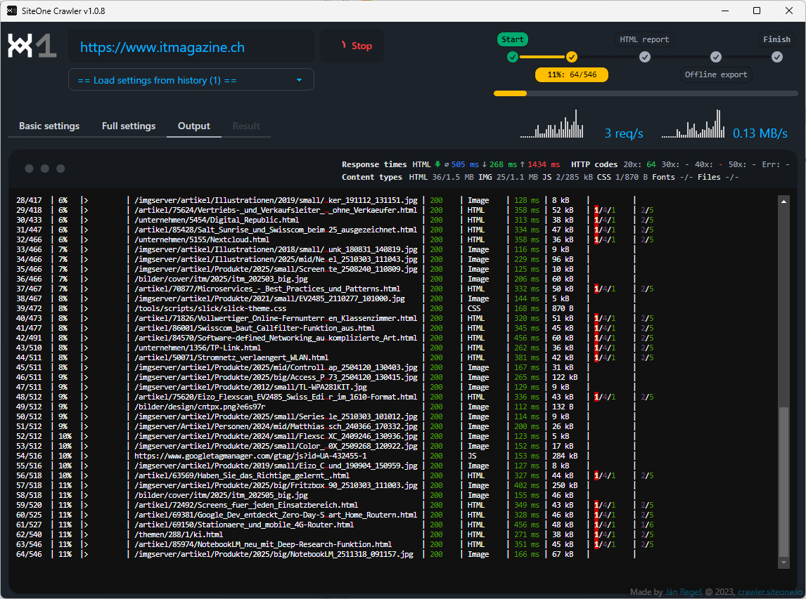 Mit SiteOne Crawler lässt sich eine Website für die Suchmaschinenoptimierung oder auch nur für die Fehlersuche umfassend überprüfen. Die Freeware scannt eine Website und liefert daraufhin Erkenntnisse zur Optimierung. Dazu zählen etwa Erkenntnisse zur Accessibility, zur Titelstruktur, verwaisten Links oder Redirects. Ebenfalls interessant: Mit dem Tool lassen sich auch komplette Offline-Versionen von Webseiten erstellen. Der Funktionsumfang des Crawlers ist beträchtlich und wird auf der Herstellerseite im Detail erläutert.