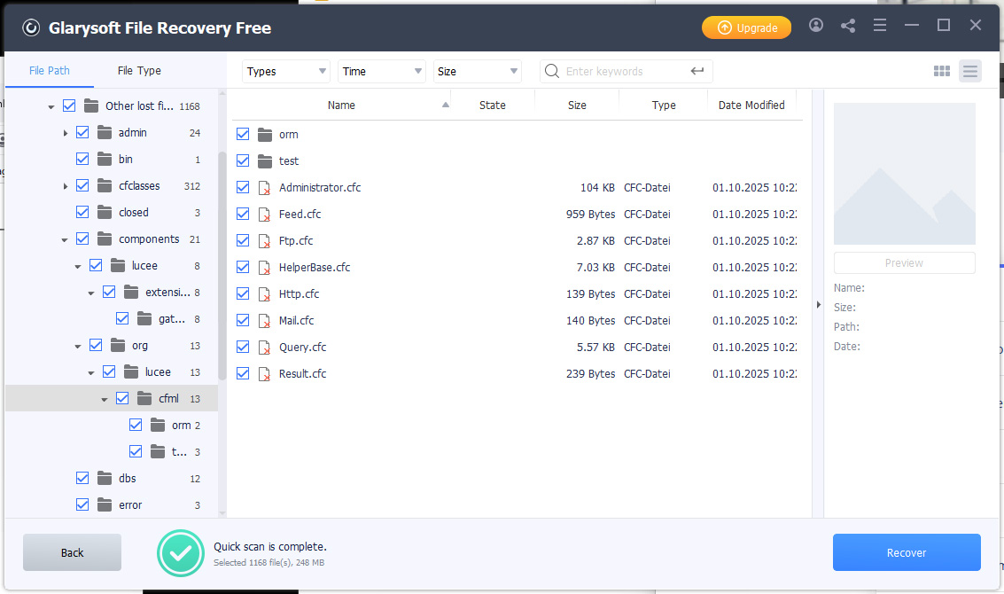 Wie der Name sagt, erlaubt File Recovery Free das Wiederherstellen von gelöschten Dateien. In einem ersten Schritt wird die Partition gesacannt und die Dateien, bei denen eine Wiederherstellung möglich ist, werden aufgelistet. Um den Prozess einzugrenzen, lassen sich die gefundenen Dateien zudem nach Dateityp, Datum oder Grösse einschränken. Bei einigen Dateitypen wie etwa Bildern steht zudem eine Preview-Ansicht zur Verfügung.
