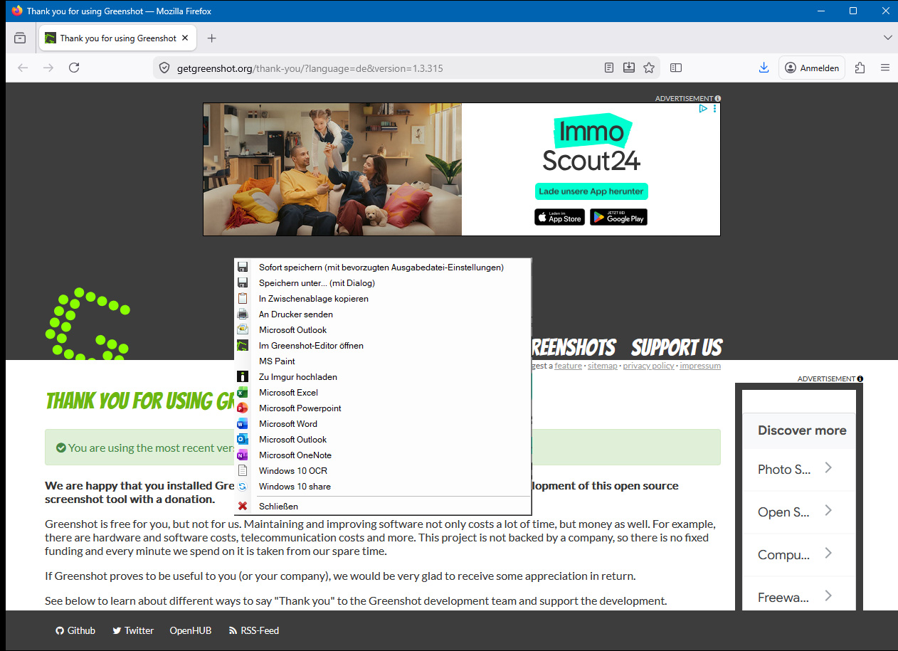 Greenshot ist ein Open-Source-Screenshot-Tool, das sich durch Speed und Flexibilität auszeichnet. Die schlanke App lässt sich per Print-Screen-Taste oder via Icon im Systray starten, worauf das betreffende Fenster oder der Bildschirmausschnitt gewählt wird. Danach öffnet sich ein Menü, wo der Speicherort oder auch Apps, an welche die Grafik übermittelt wird, ausgewählt werden.